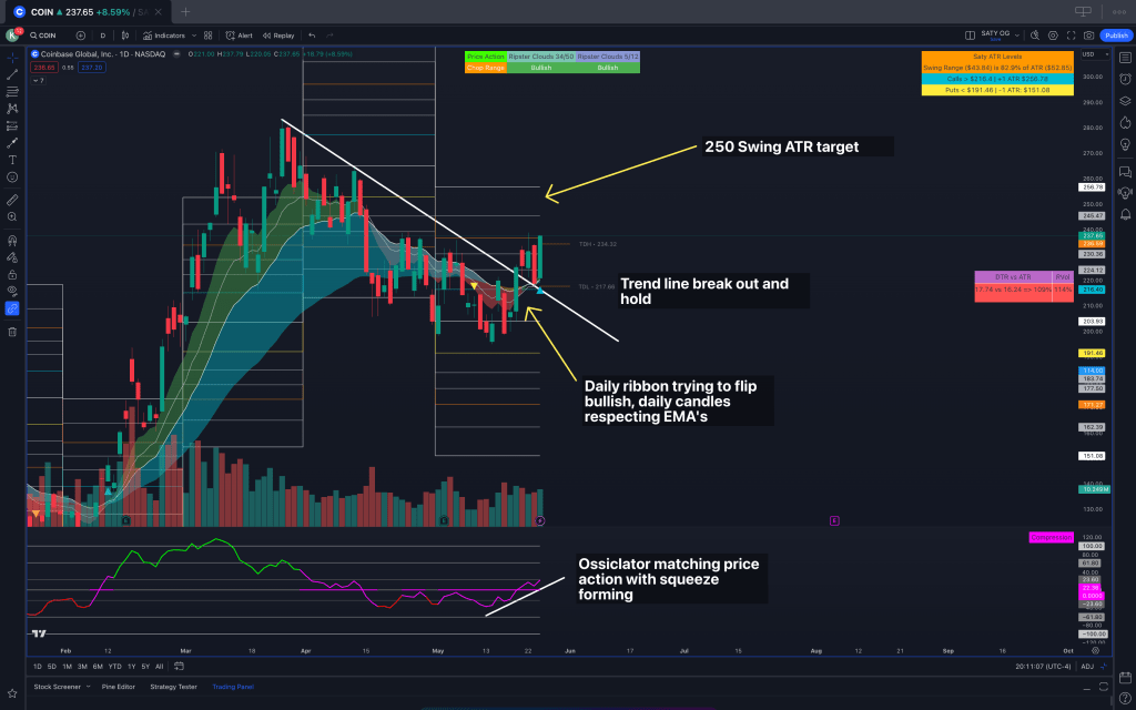 Coin has been an intriguing ticker for traders and investors alike. Recently, it’s been in a phase of consolidation, but it displayed a potentially favourable bullish candle to the upside last week. This shift has certainly changed the outlook for Coin.