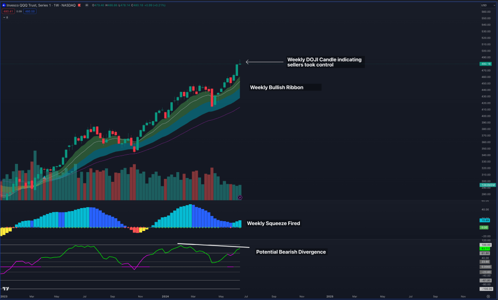 QQQ this OPEX week printed a weekly candle with a long upside wick indicating that we may see a move back down as sellers took control into the end of the week.
